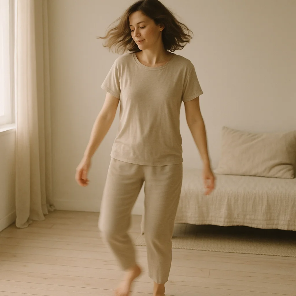 Here’s a basic way to try it: Stand with your feet hip-width apart, knees soft. Start bouncing gently in place, letting the motion travel up through your ankles, knees, hips, and spine. As you find a rhythm, allow your arms, shoulders, and jaw to loosen. If you feel a spontaneous shaking or trembling arise, welcome it—that’s your nervous system letting go. Practice for several minutes, then rest in stillness and notice what’s changed.